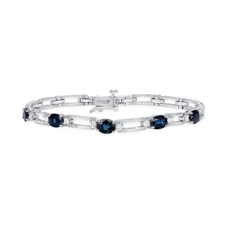 14k white gold bracelet with 10 round diamonds 0.25 ct and 5 oval genuine sapphires 2.88 ct