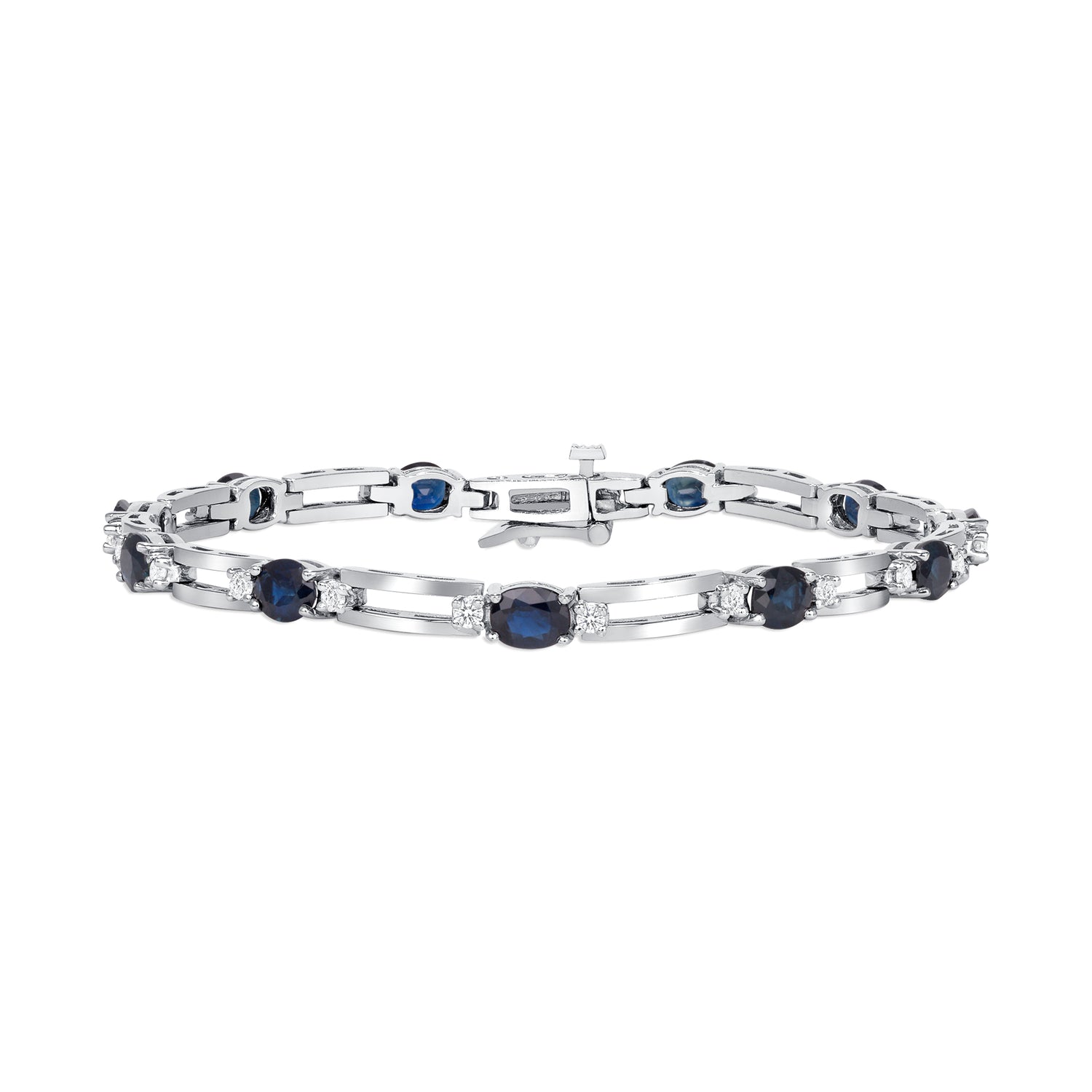 14k white gold bracelet with 22 round diamonds 0.56 ct and 11 oval genuine sapphires 5.52 ct