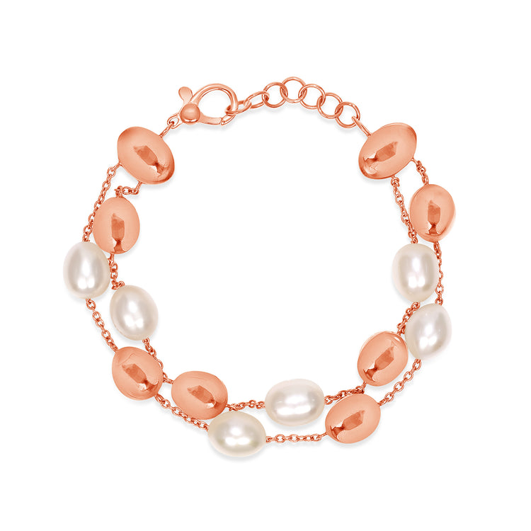 18k Rose gold Italian-made bracelet with light rose pearls. 15.90 grams.