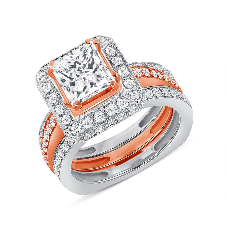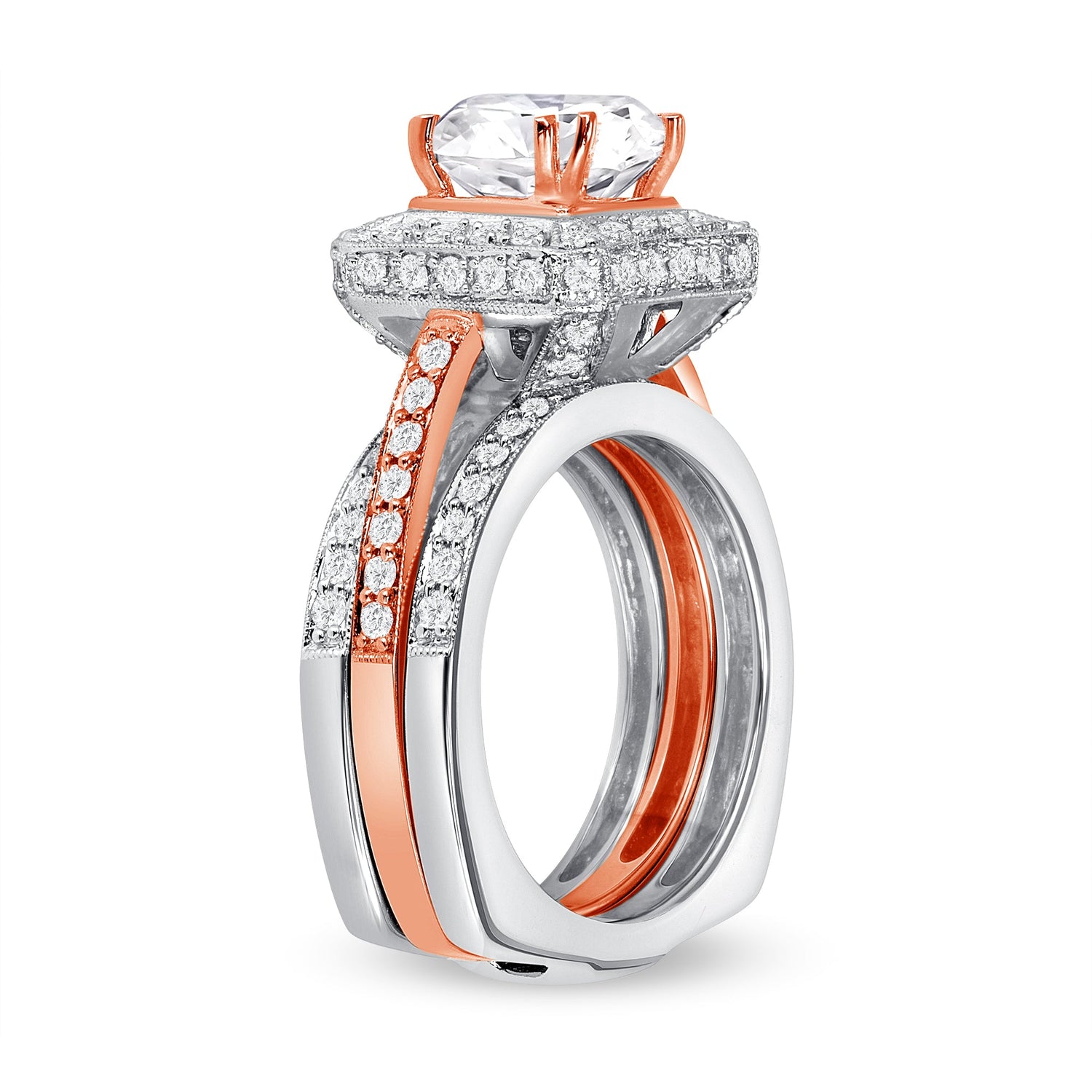 18k rings, set of 2, rose gold and white gold, with 102 round diamonds 1.14 carat. center 1.00 -3.00 carat