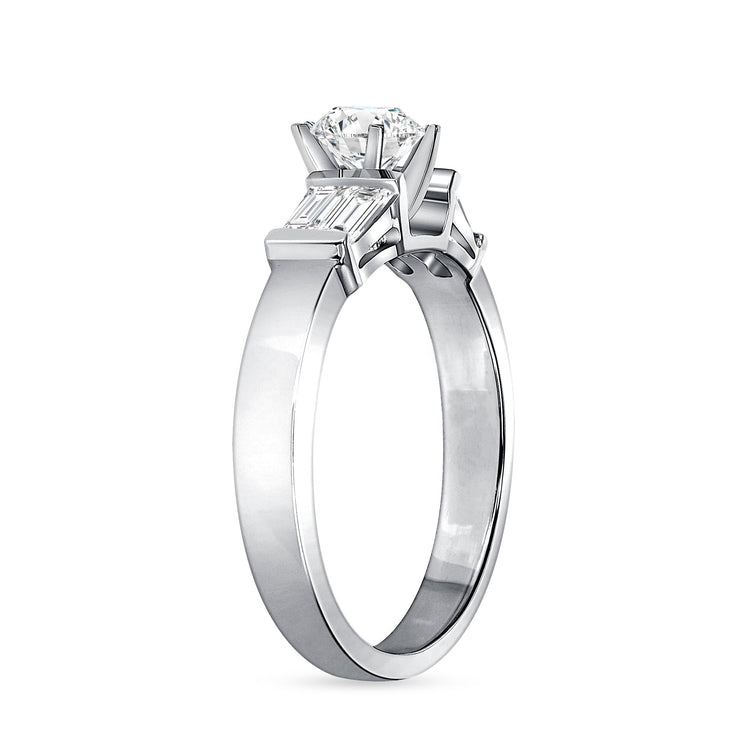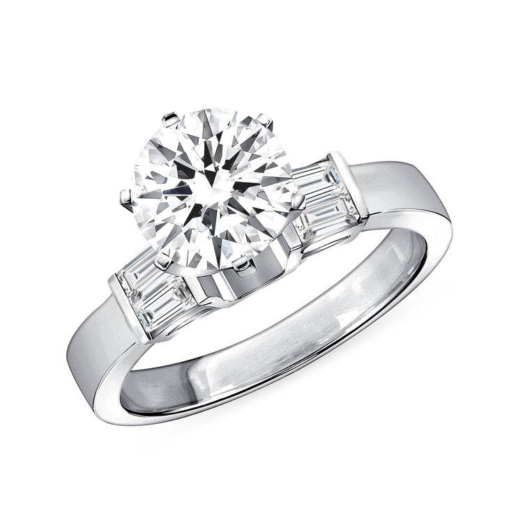 Platinum ring with 4 tapered baguette diamonds 0.39 carat. center 0.50 -3.00 carat