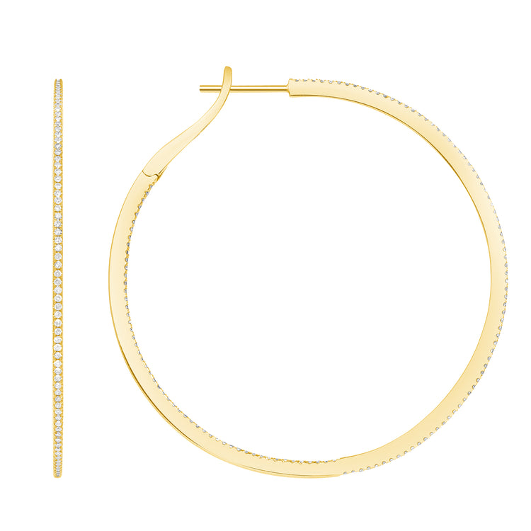 18k rose gold hoop earrings, 2 inches round, with 260 round diamonds 0.90 ct