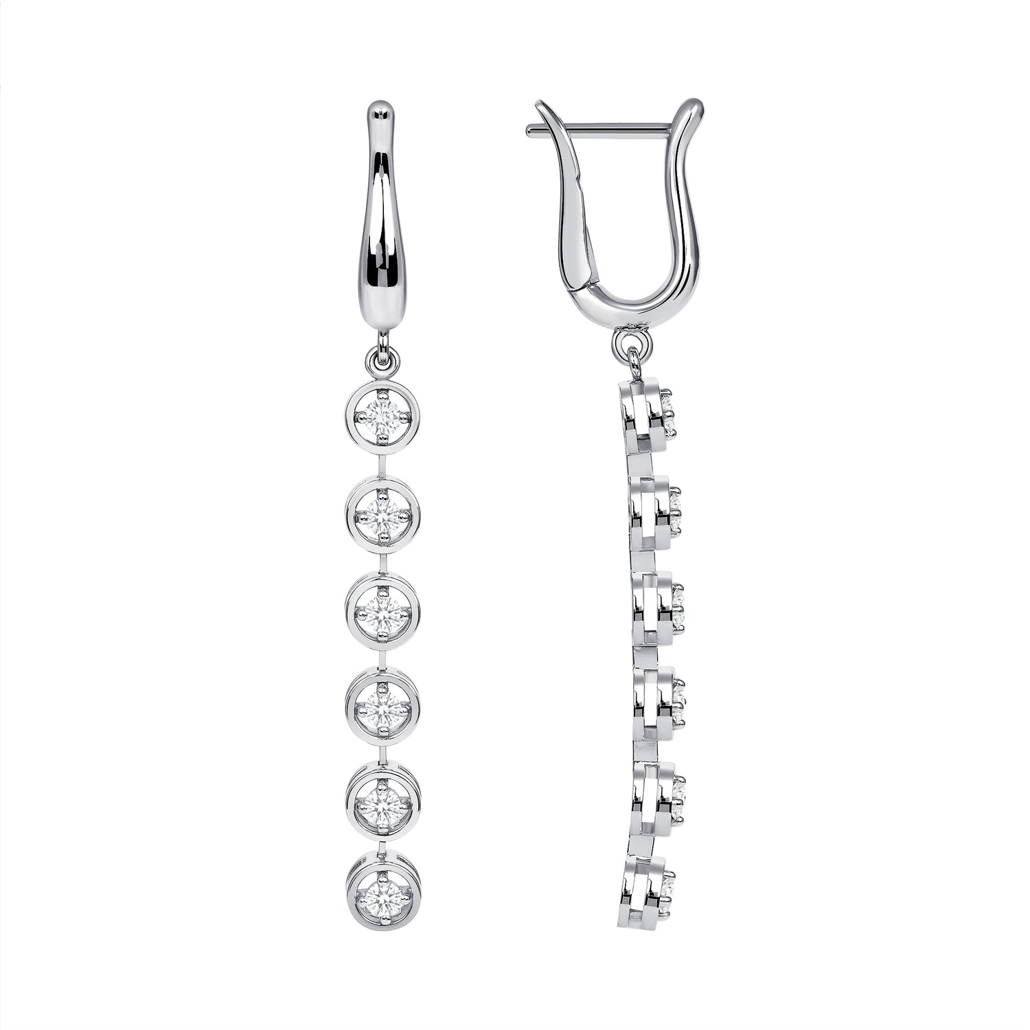 18k white gold dangling earrings with 12 round diamonds 0.50 ct