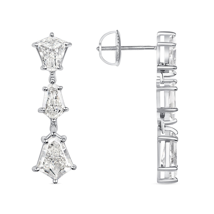 18k white gold dangling earrings with 6 kite shaped diamonds 3.12 ct