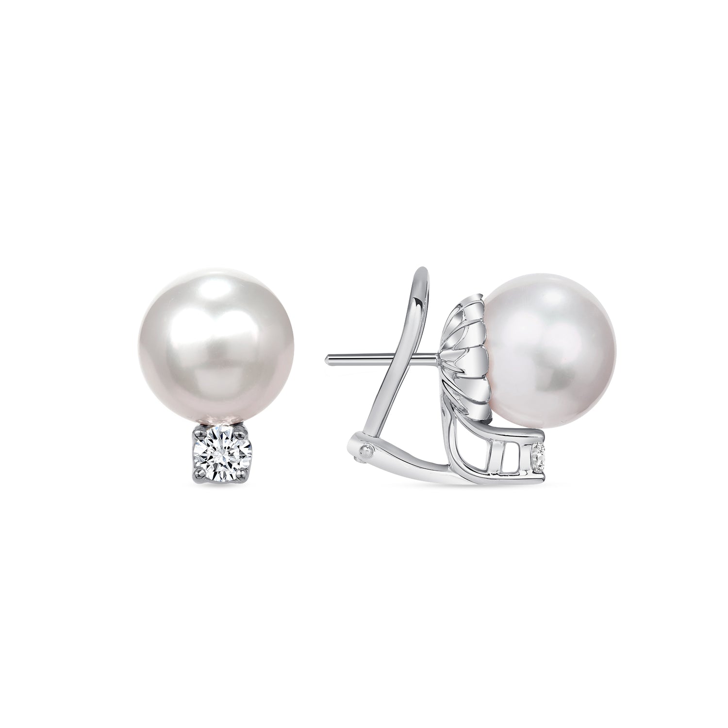 14k white gold earrings with 2 round diamonds 0.45 ct and 2 south sea pearls (round 11.00 mm each)
