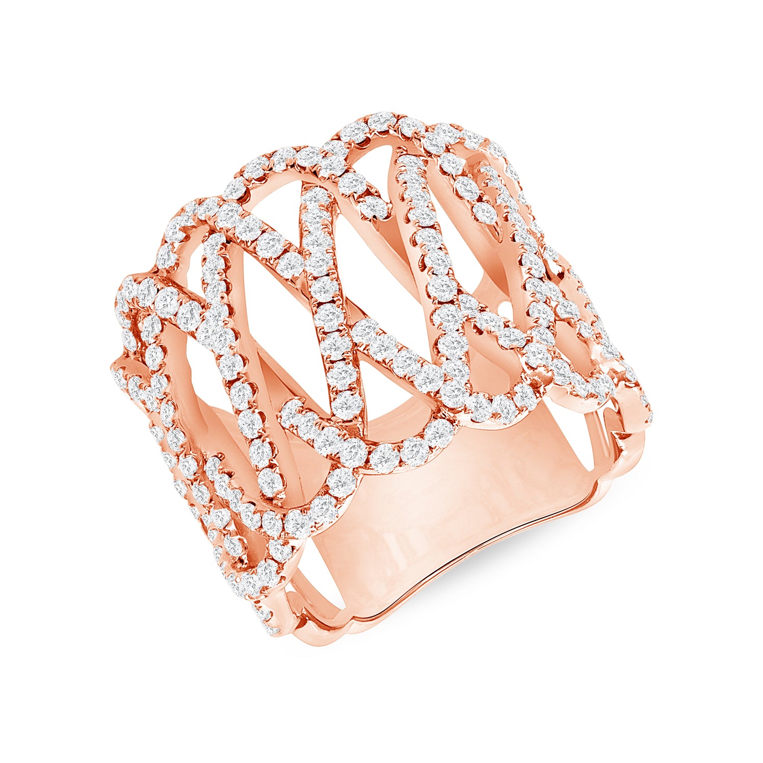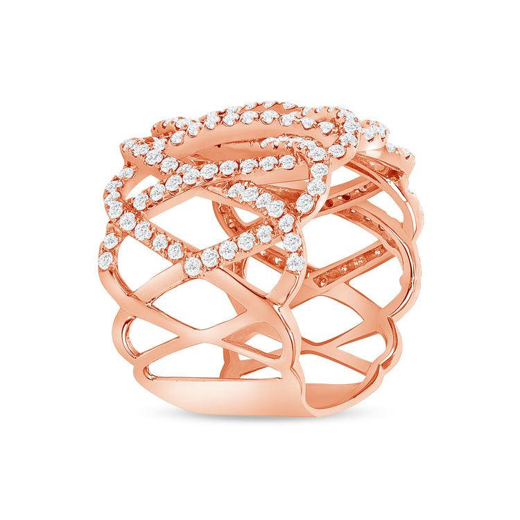 18k rose gold ladies band with 153 round diamonds 1.47 carat.