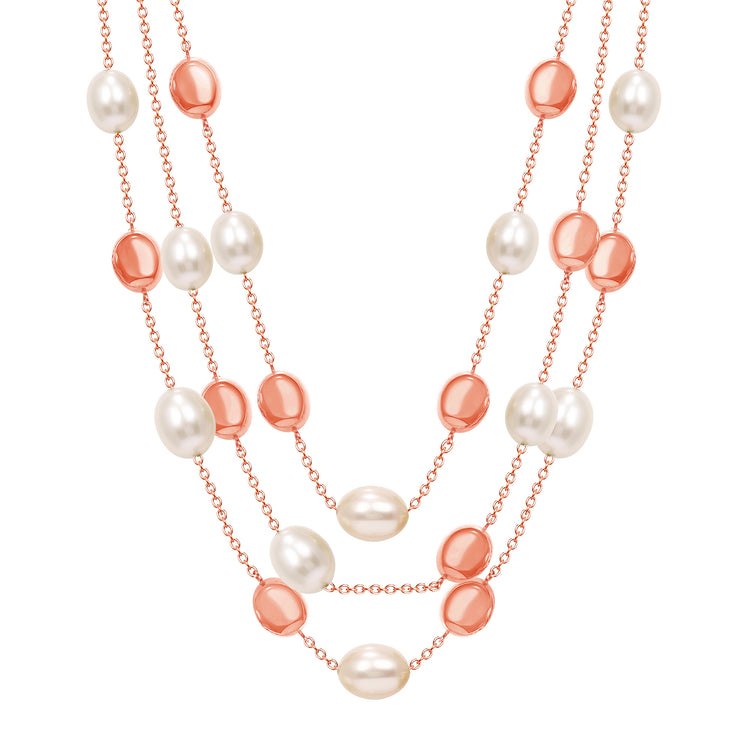 18k Rose gold Italian-made necklace with light rose pearls. 32.60 grams.