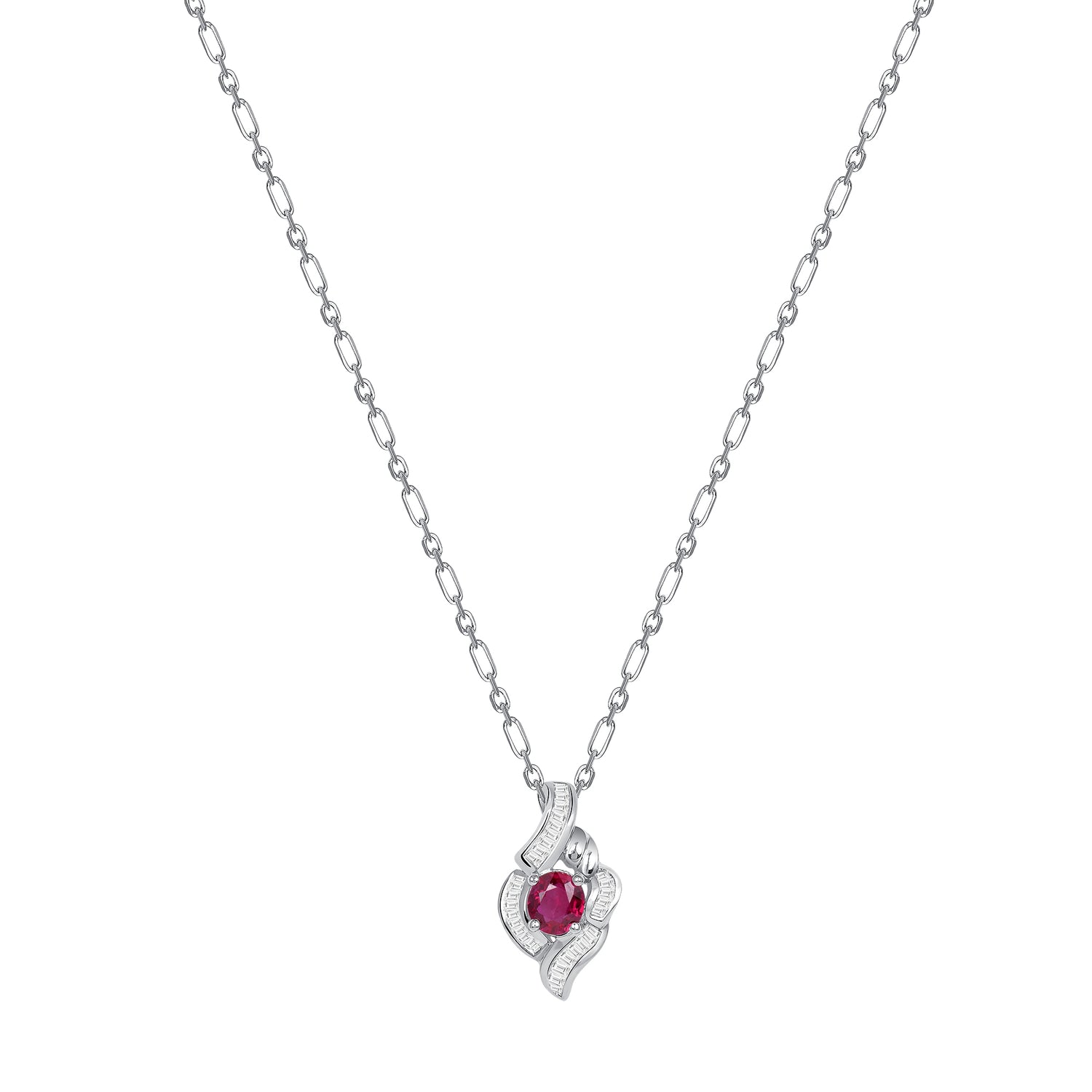 18k white gold pendant with 31 baguette diamonds 0.32 ct and 1 natural oval ruby 0.60 ct