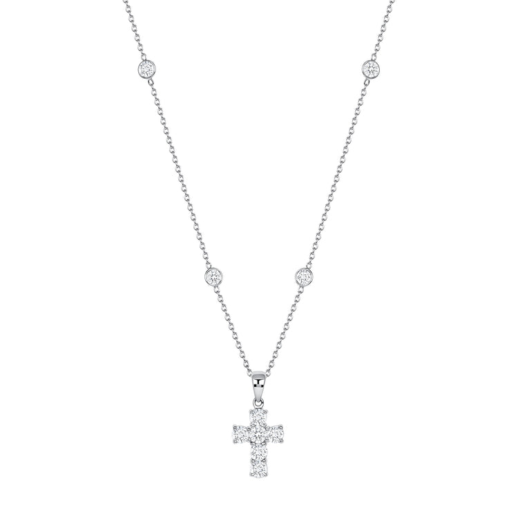 18k white gold cross with 6 round diamonds 1.20 ct and 18k white gold chain with 10 round diamonds 1.35