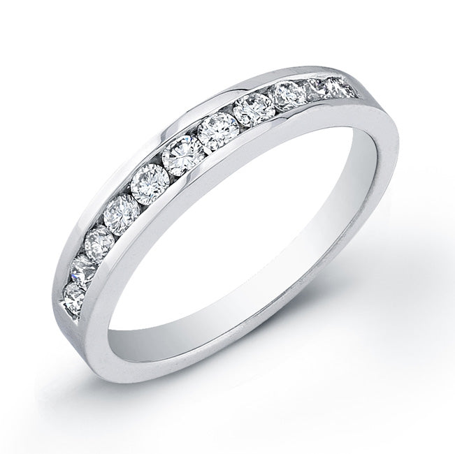 18k White Gold wedding band with 11 round diamonds 0.42 ct